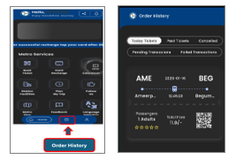 Click on order history icon available on home page of App at the bottom to view ticket details according to the status as below: